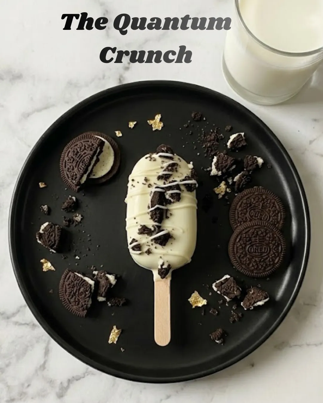 Oreo crumbles and a white chocolate drizzle.