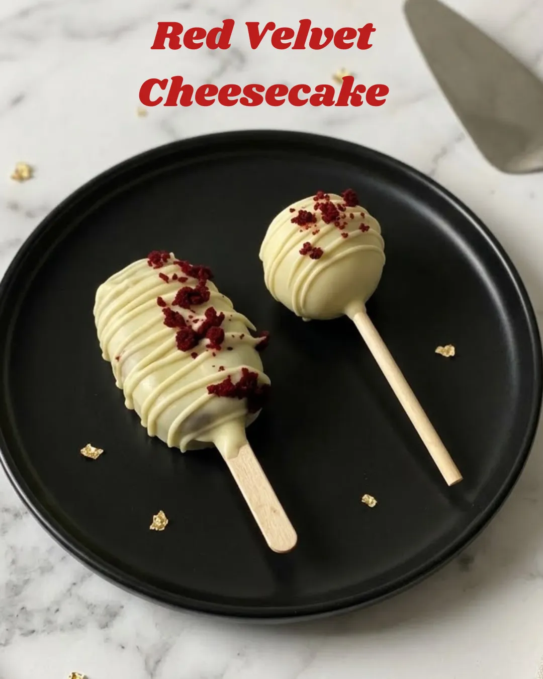 A Red Velvet Cakepop in a cheesecake flavored coating along with